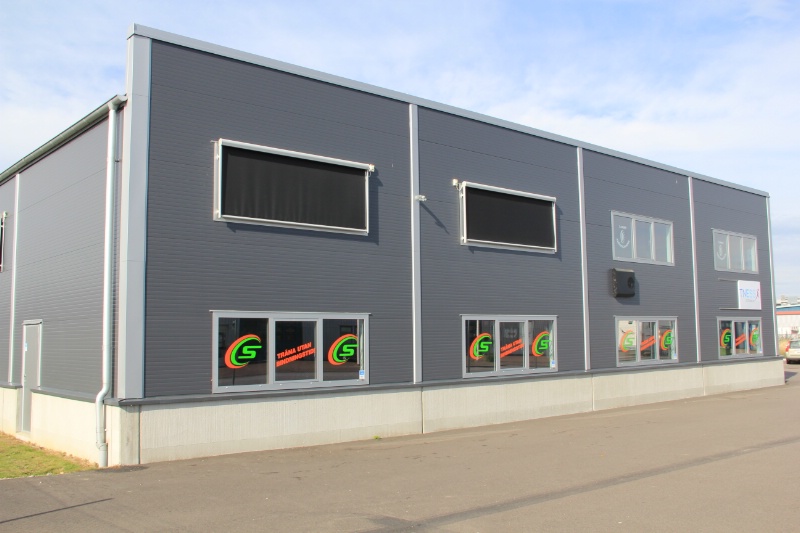 Diskservice i Lomma har uppfört ett företagshotell som är på 1 300 kvadratmeter, i stålbyggnaden finns flera olika hyresgäster. Fasaden på stålbyggnaden är av grafitgråa sandwichpaneler och taket är av högprofilerad varmförzinkad plåt, isolerat och papptäckt. I stålbyggnaden finns både lager och butik. Entrépartiet är 2,20 meter brett och 4,80 meter högt och består till en del av rökfärgat och personsäkert glas.
